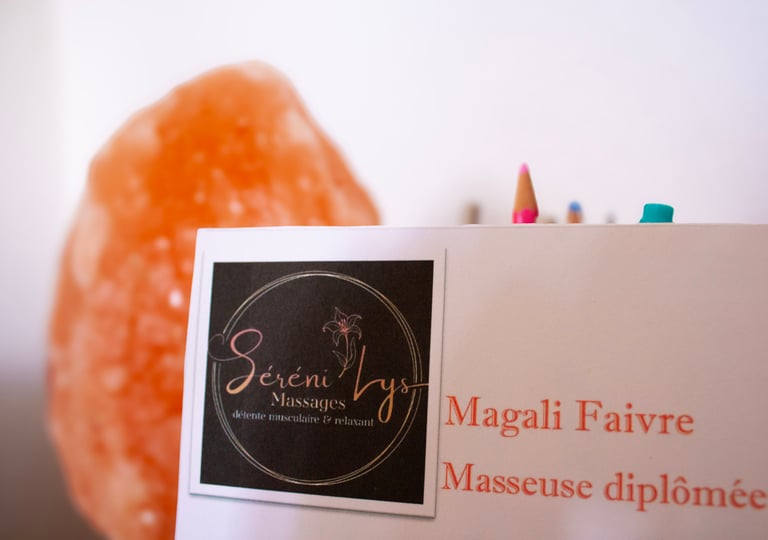 Pour favoriser la détente musculaire, j’utilise un mélange d’huile végétale et d’huile essentielle. Un baume aux essences naturelles peut également être appliqué pour cibler les zones de tension et encourager un lâcher-prise total.