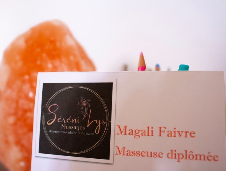 Pour favoriser la détente musculaire, j’utilise un mélange d’huile végétale et d’huile essentielle. Un baume aux essences naturelles peut également être appliqué pour cibler les zones de tension et encourager un lâcher-prise total.